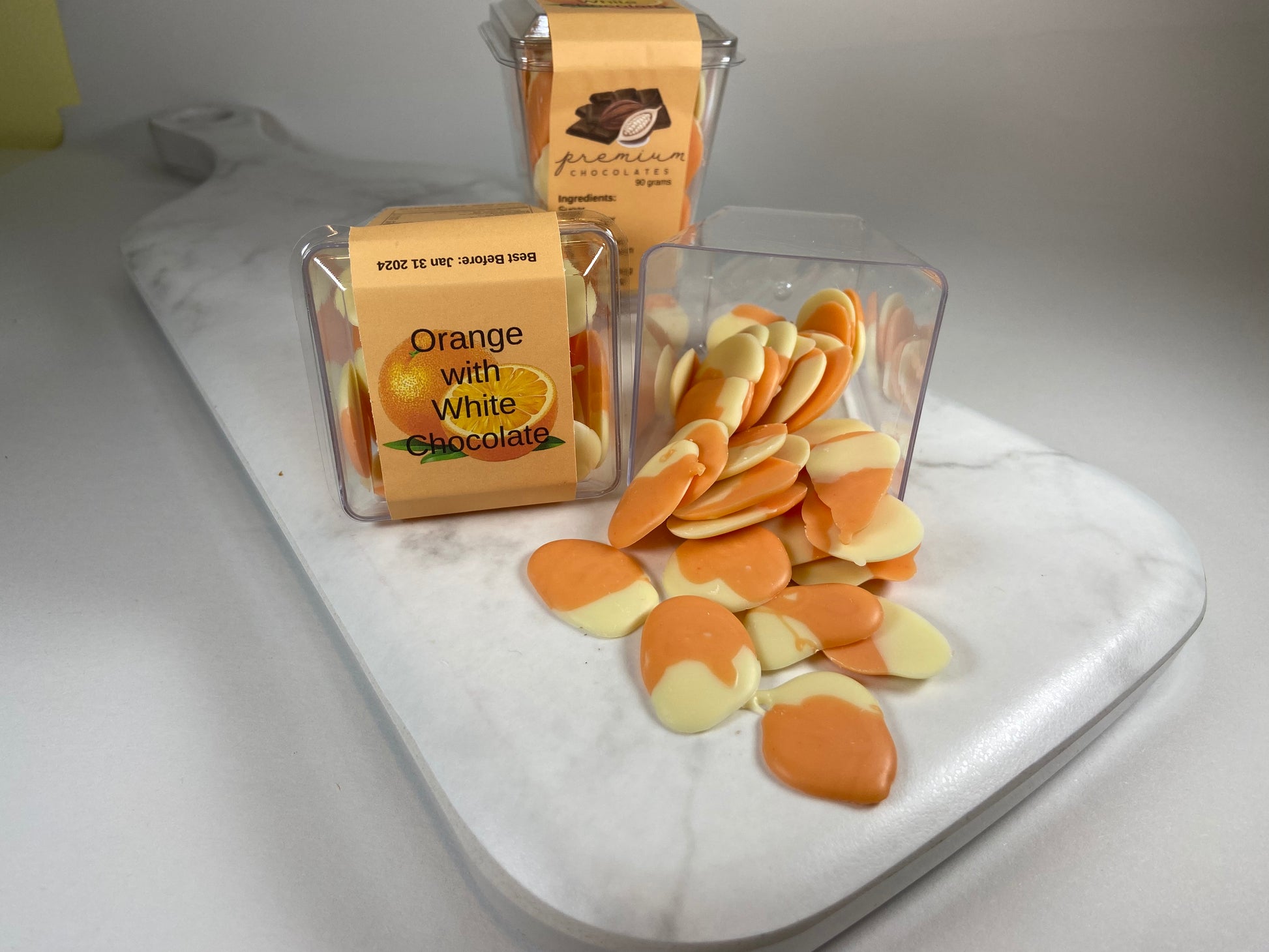 Duos are ultra-thin buttons of two kinds of chocolate flavours that pair wonderfully together. Typically, a combination of a elegant premium chocolate with an intensely flavoured fruit chocolate to provide a delicious contrast of tastes.